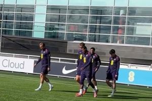 该记者写道:“英格兰球员在这个宜人的周五下午前往训练场。全部24人参加训练,斯通斯因肌肉问题今早已离队。”