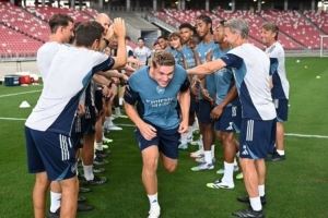 葡萄牙体育中锋约克雷斯今夏加盟阿森纳,他已与球队会合。阿森纳球员们组成“欢迎通道”,拍打从中间穿过的约克雷斯,对他表示欢迎,阿森纳官方社媒晒出照片。